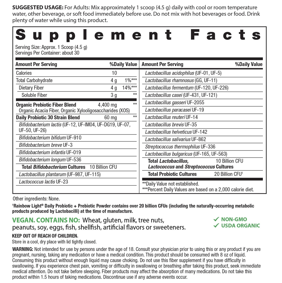 Polvere Prebiotica + Probiotica Quotidiana (Biologica), 20 Miliardi di CFU, Flacone da 4,76 oz