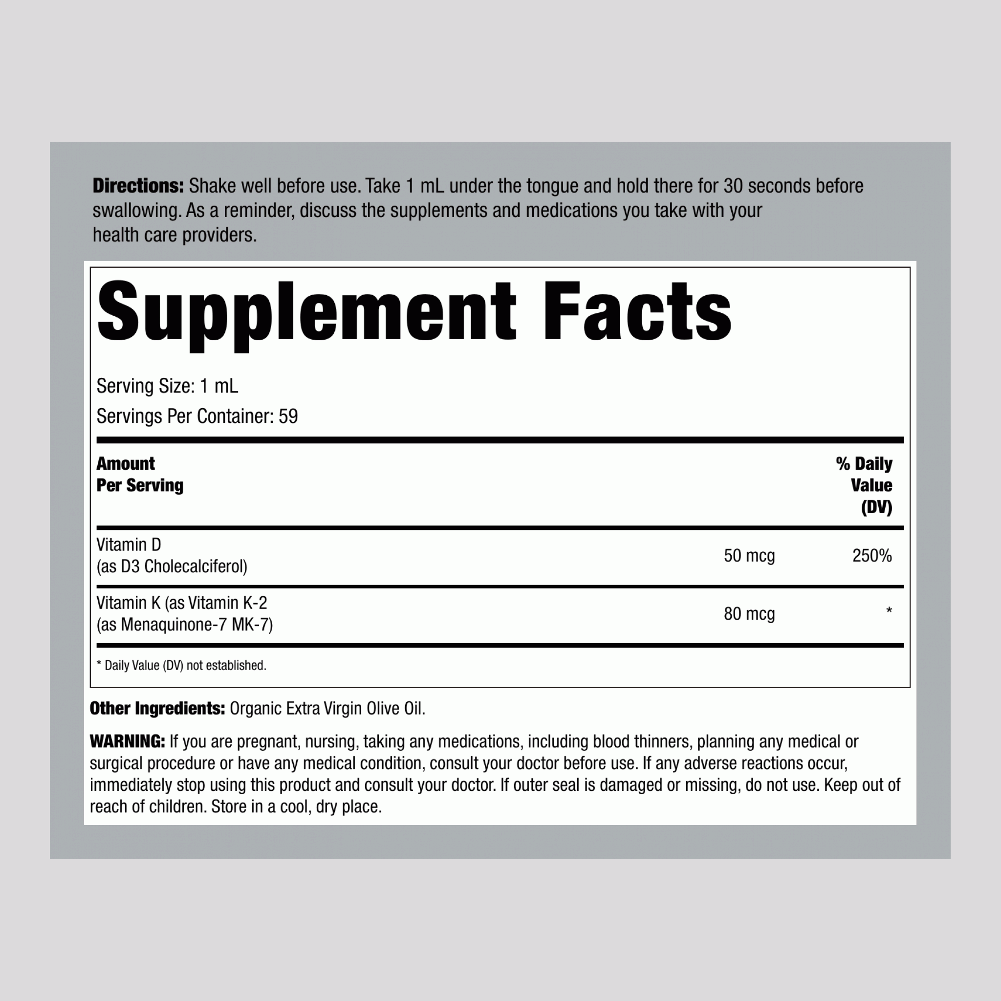 Vitamin D3 + K2 as MK-7, 2 fl oz (59 mL) Liquid